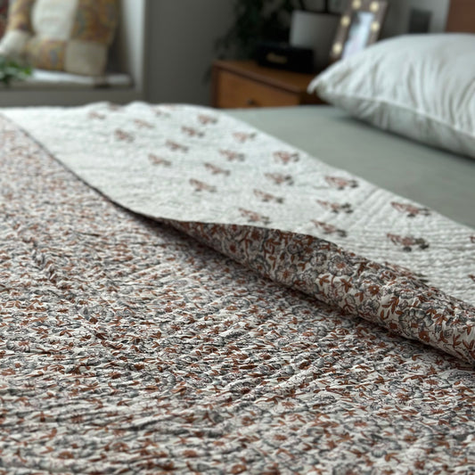 Reversible Quilt - Orange Brown & Grey (Jaipuri Dohar)