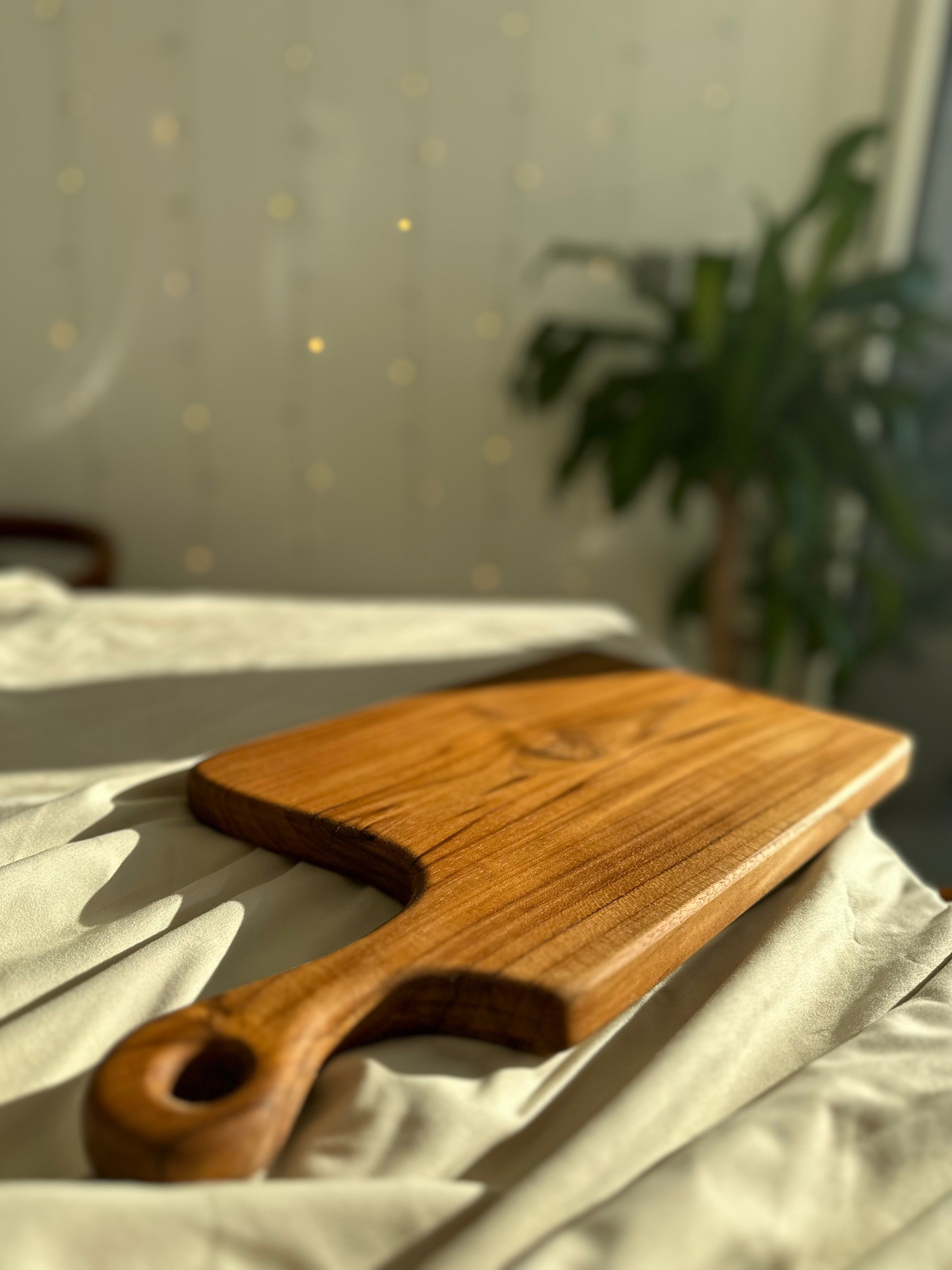 Compact yet stylish, this artisan-crafted teak wood paddle board is perfect for quick prep tasks or serving small bites. Its petite size makes it ideal for slicing fruits, garnishing drinks, or serving cheese for intimate gatherings or personal snacks. With its smooth surface and natural wood grain, it adds a touch of elegance to even the simplest of moments in your kitchen.
