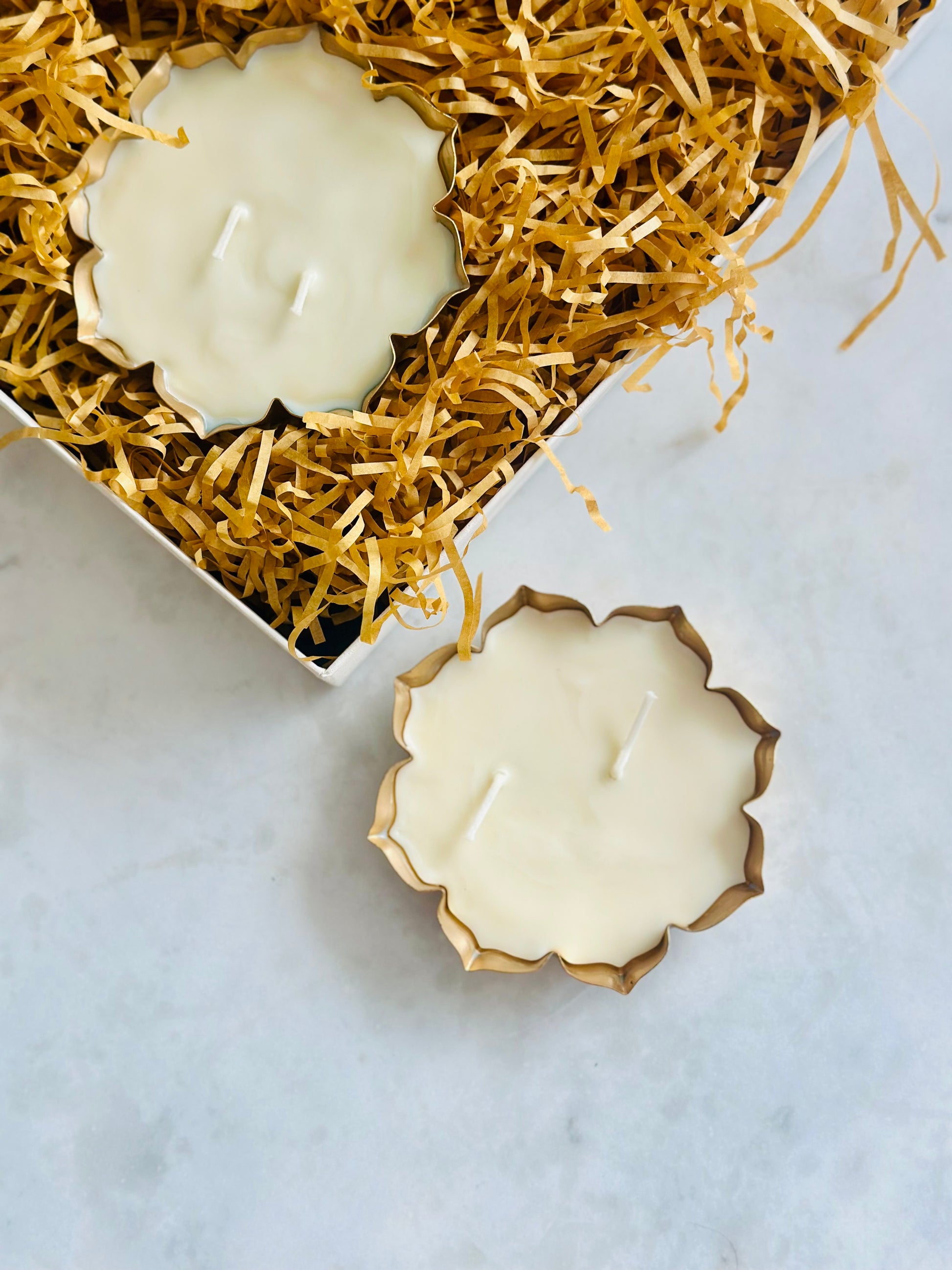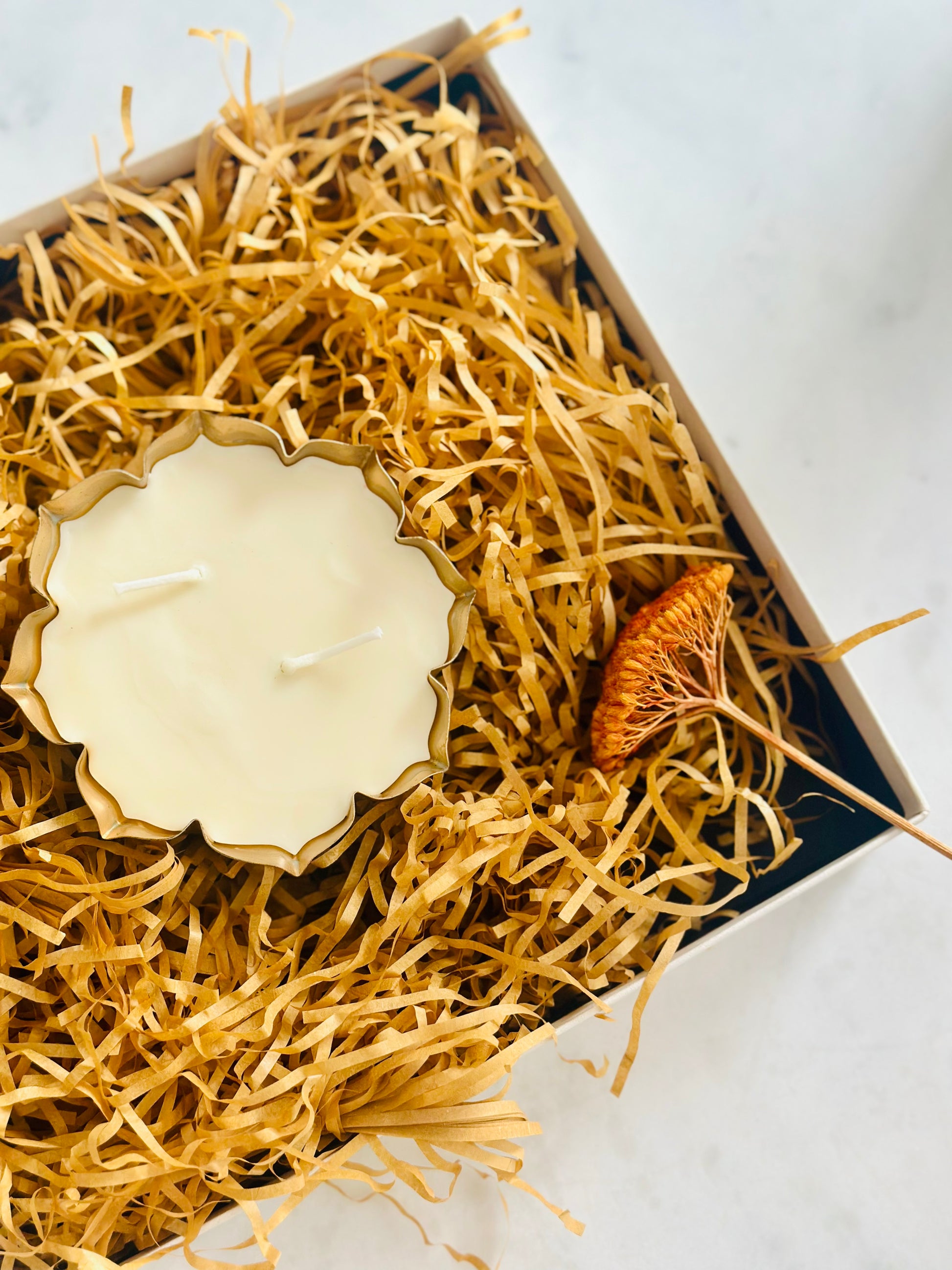 Elevate your home decor with this beautifully handcrafted candle infused with a soothing sandalwood fragrance. We've taken the cherished tradition of welcoming guests with brass urlis and festive diyas and reimagined it as a modern, elegant candle. It's the perfect way to add a touch of tranquility to your modern space
